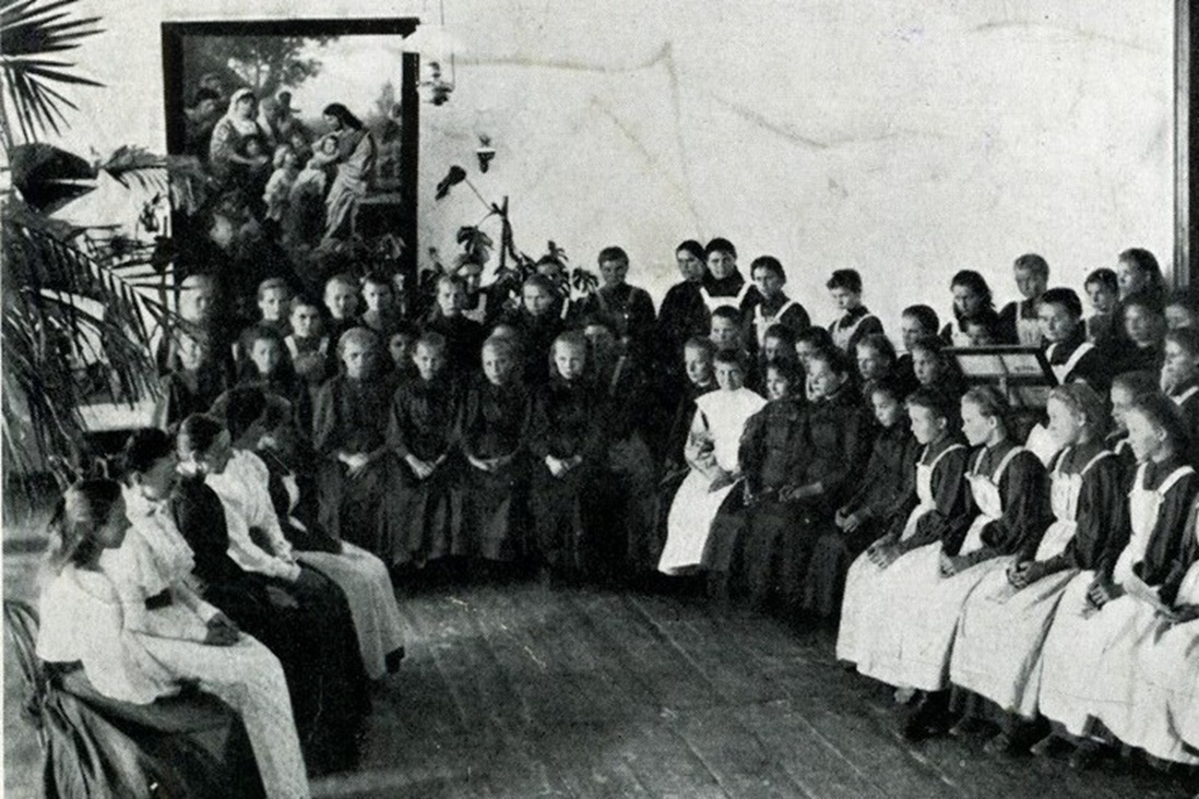 «С праздником, дорогие», произносил каждый член семьи, входя утром в общую комнату. Все были в белых платьях. С особенной радостью и праздничным настроением поздравляли друг друга с дорогим праздником. Вот входит в комнату Е. И. В. Она, как вступающая сегодня в Братство, первый раз надела белое платье. Несколько сестёр ласково окружают её: «Теперь, Катя, ты уже совсем наша»; она отвечает им светлой радостной улыбкой…